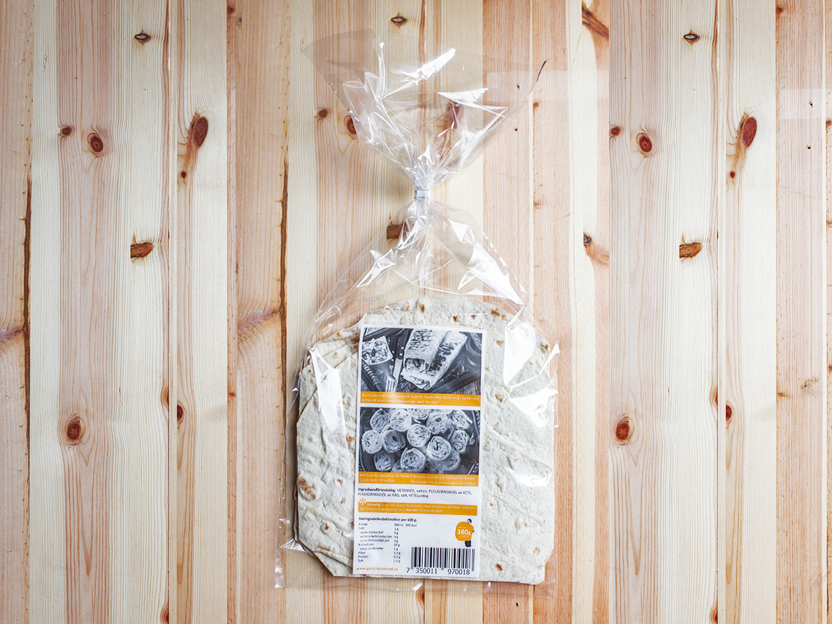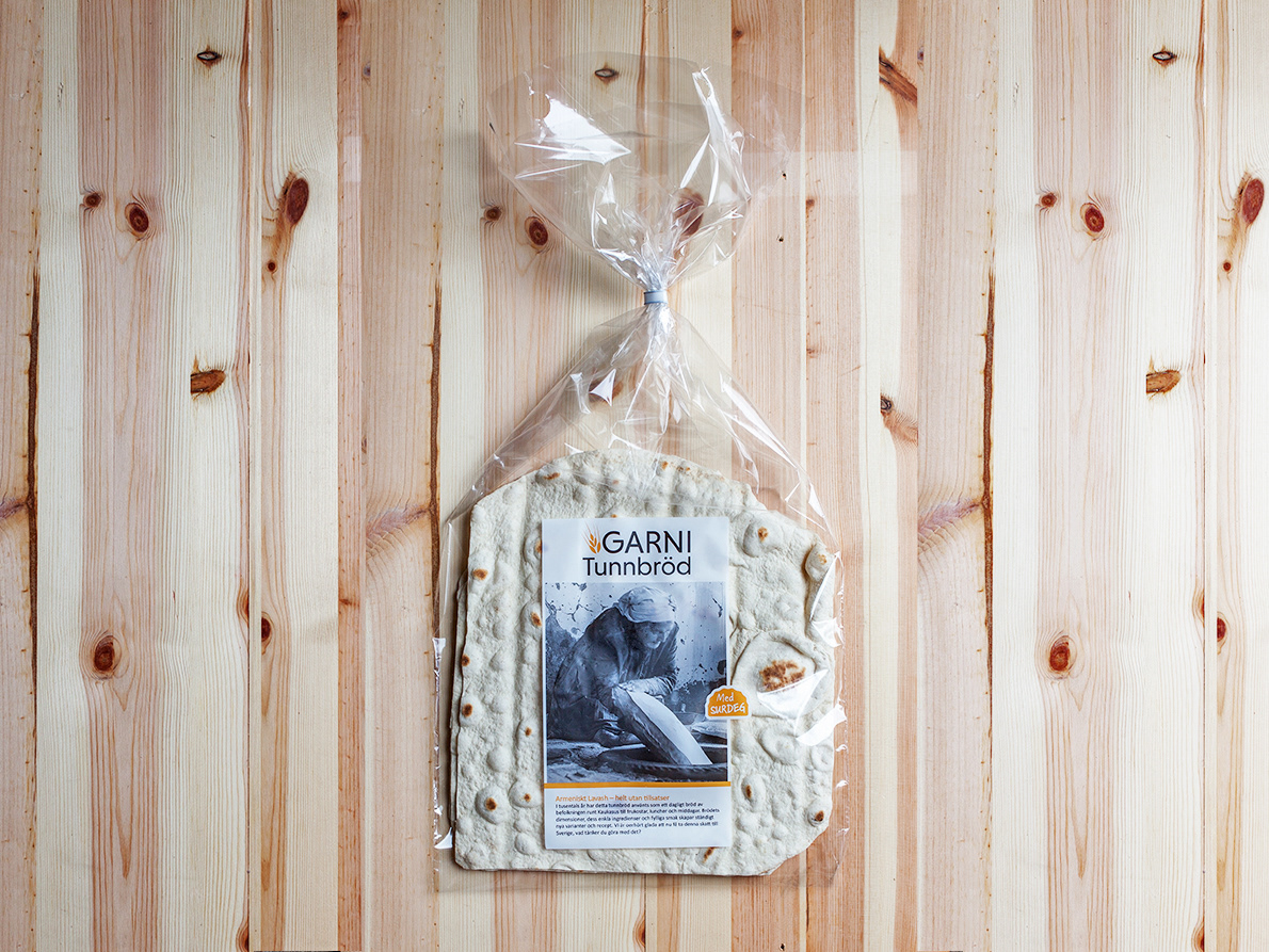 Förpackningsdesign för Garnis Lavash, armenisk traditionell tunnbröd. Freezable CPP wicket bag. 30mic. Flexo print 3+3 colors.